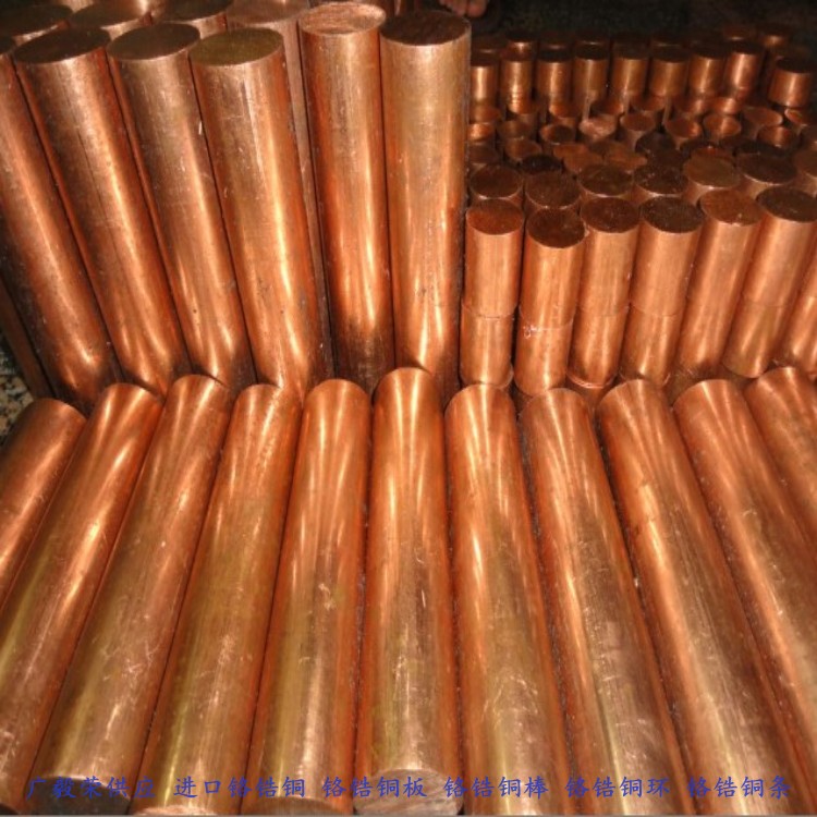 鉻鋯銅特點:具有較高的強度和硬度,導電性和導熱性,耐磨性和減磨性好,經時效處理后有良好的導電性,導熱性,硬度高,耐磨抗爆,抗裂性以及軟化溫度高,焊接時電極損耗少, 焊接速度快,焊接總成本低,適合作為熔接焊機的電極有關管件,但對電鍍工件表現一般。用制作電火花電極能電蝕出比較理想的鏡面,同時直立性能好,能完成打薄片等純紅銅難以達到的效果對鎢鋼等難加工材質表現良好。